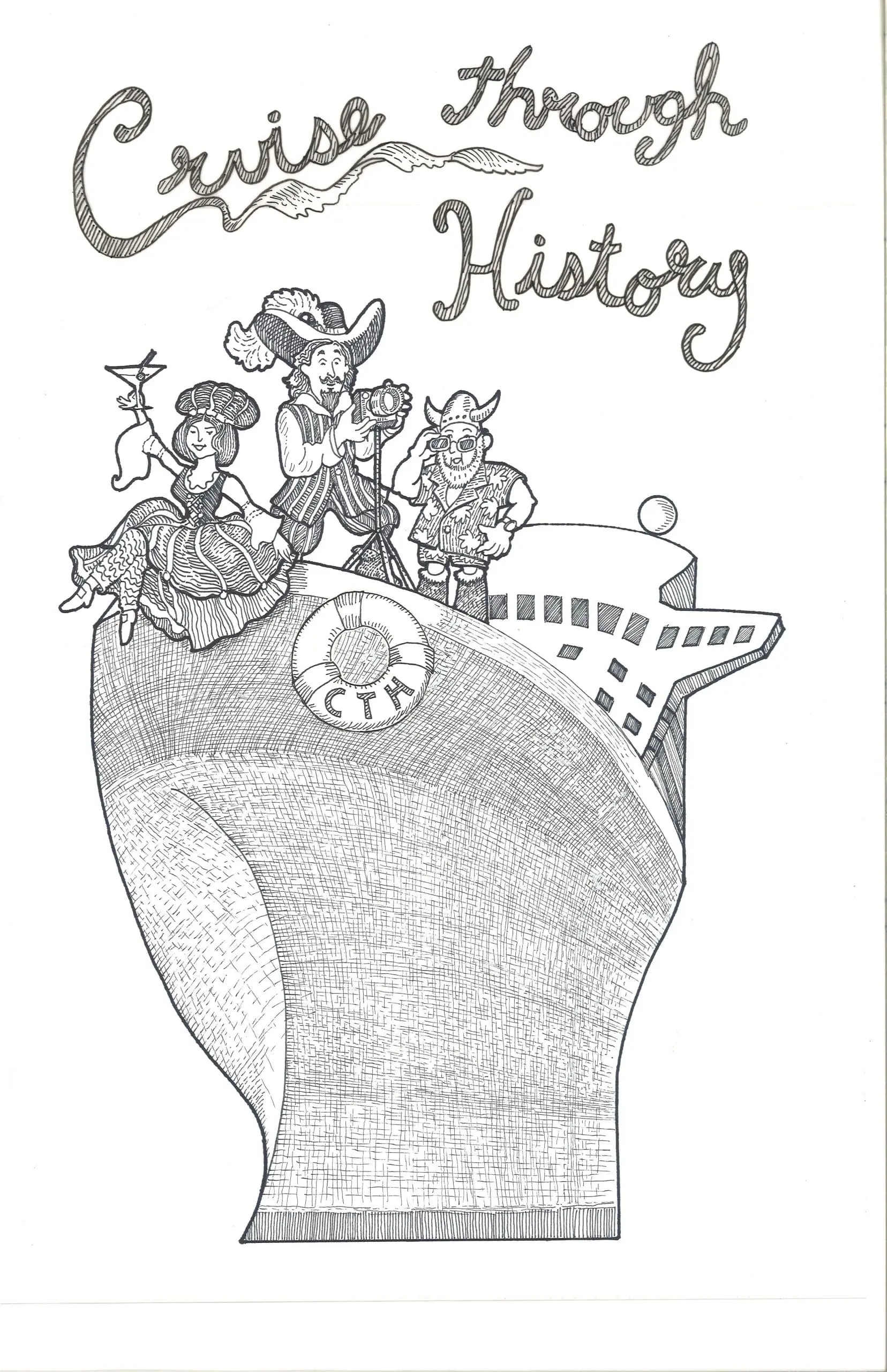 The Cruise through History logo is the work of cartoonist and courtroom artist, Dana Verkouteren of Cabin John, Maryland. The characters smile at me and remind me not to take history, or myself, too seriously. The cartoons in the stories are the work of Digby & Rose Creations, Washington, DC.
